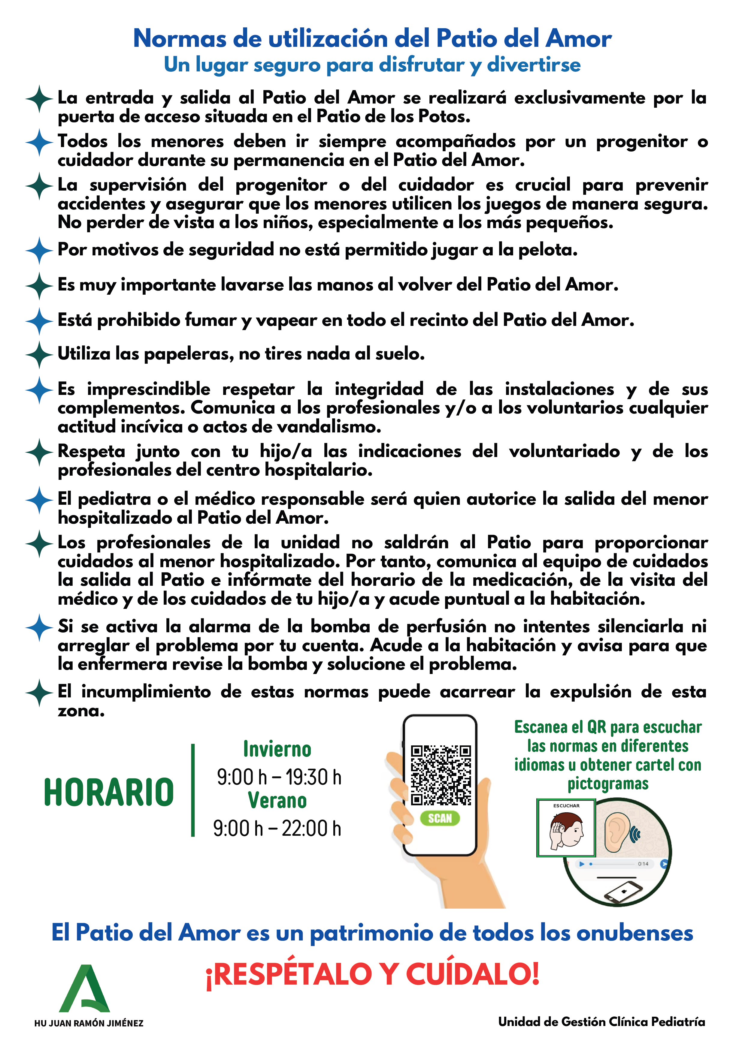 Además, se han elaborado las normas del espacio para el mejor uso y conservación del mismo, del que velarán los profesionales del hospital, los voluntarios de la Asociación y la Hermandad así como el resto de entidades usuarias del espacio.