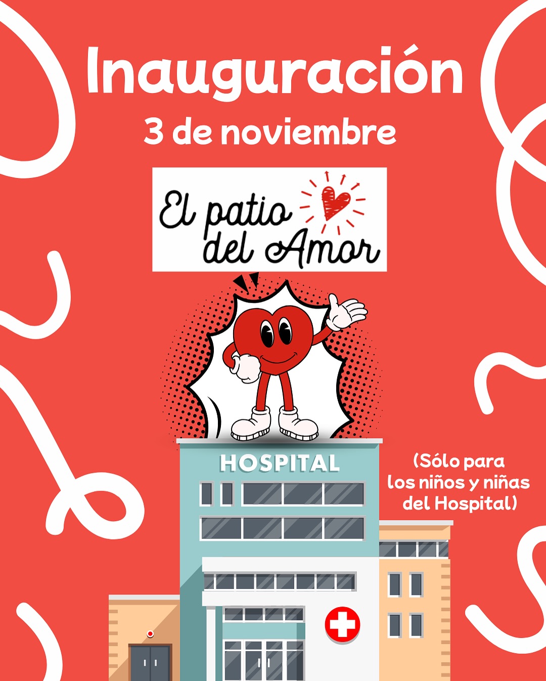 El próximo lunes 3 de noviembre será un día muy especial para los niños y niñas hospitalizados y sus familias. El Patio del Amor abrirá sus puertas en un acto íntimo y privado, sin acceso abierto al público general. Ellos serán los verdaderos protagonistas: cortarán la cinta, disfrutarán de una merienda saludable, música y actividades de animación, y celebrarán que este rincón de amor se convierte en un espacio vivo para su bienestar